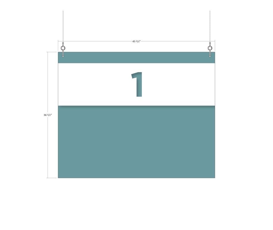 - Measuring 45.5 inches long by 36 inches tall by 2.5 inches thick, this aisle marker is a sturdy and durable addition to your store.