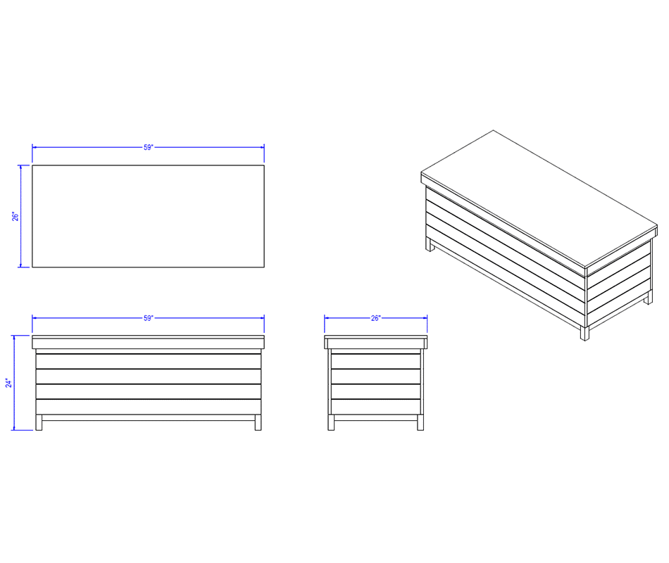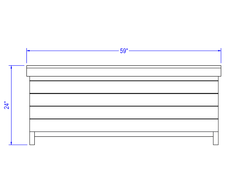 Overall Dimensions: 57.5″ width x 25″ height x 24.5″ depth.
