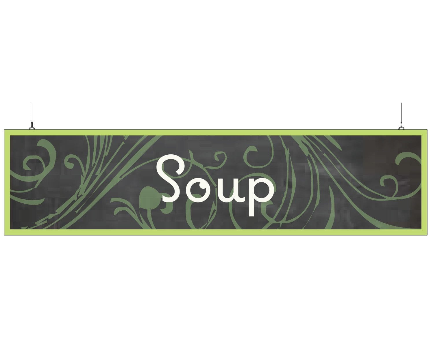- Digitally printed on 6-millimeter PVC with a chalkboard-look graphic and printed green frame.