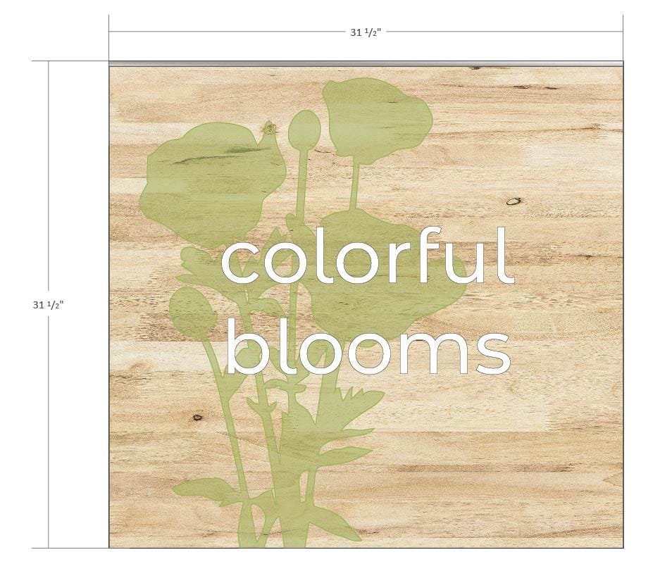 - Dimensional copy, reading “colorful blooms”, stands off sign backer .25-inch.