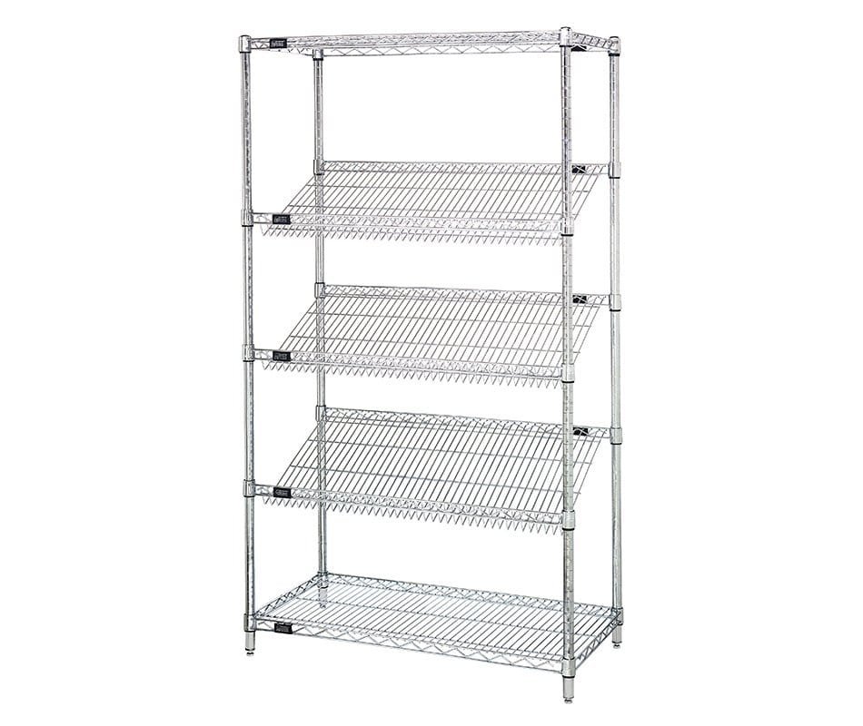 Quantum 36″W x 24″D x 63″H Chrome Slanted Shelving
