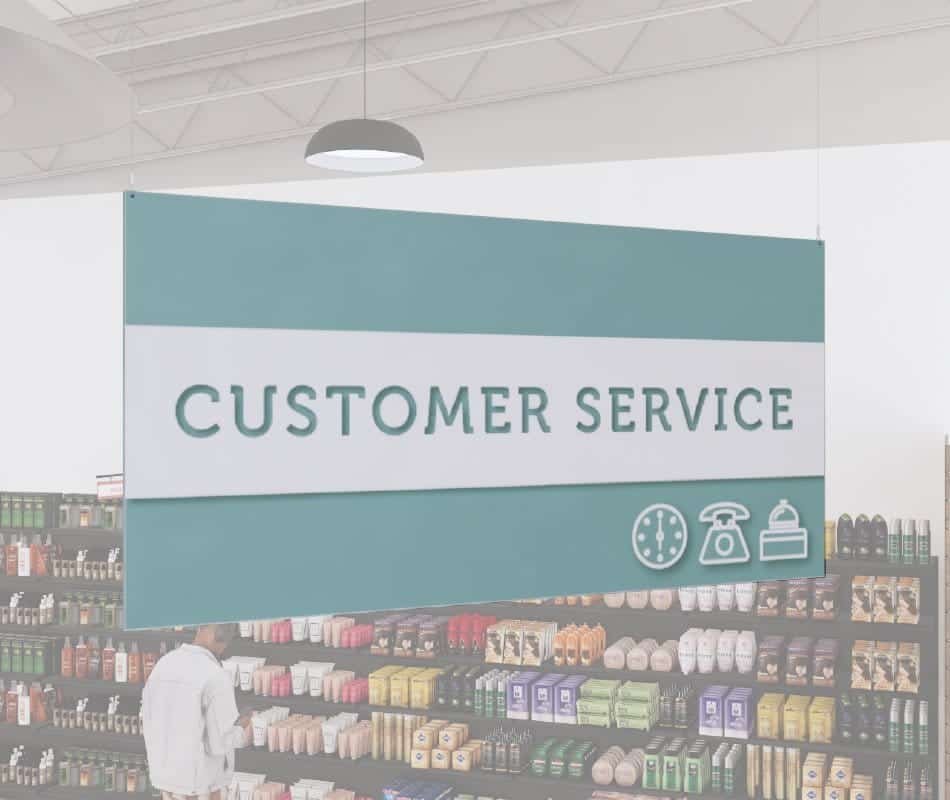 - It’s perfect for grocery stores, convenience stores, pharmacies, and any other business that wants to create a bold and professional look for their customer service department.