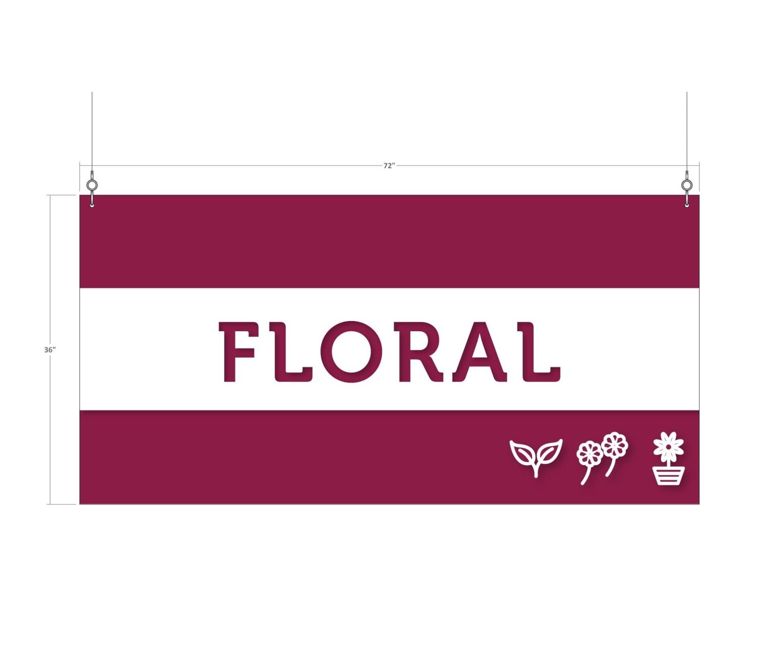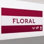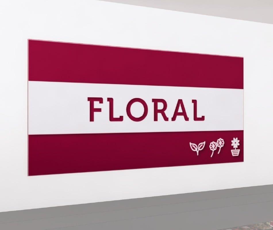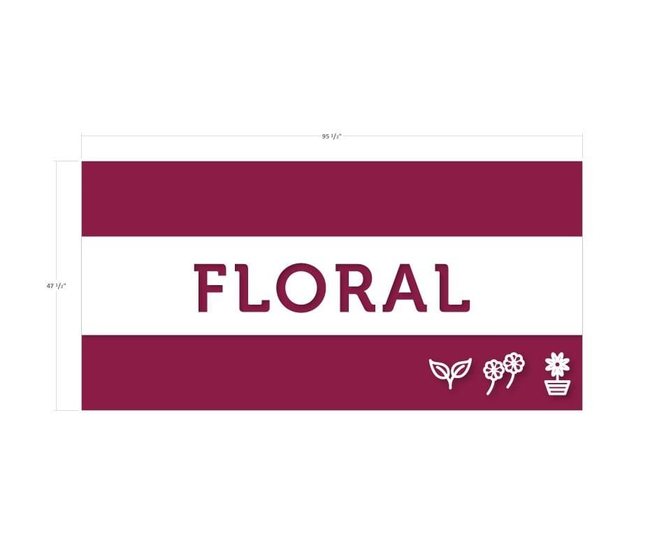 - With its bold color, dimensional icons, and cut-out text that reads “FLORAL” and reveals the color underneath, this sign is sure to grab your customers’ attention.