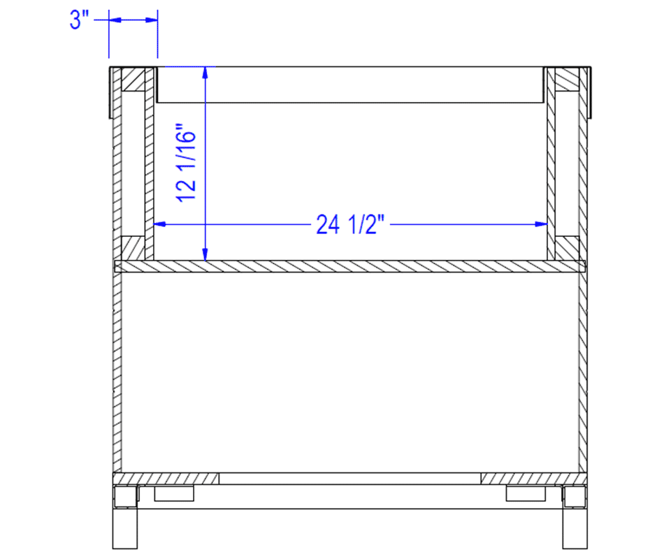 Internal Compartment Dimensions: 24″ width x 12″ height x 24″ depth.